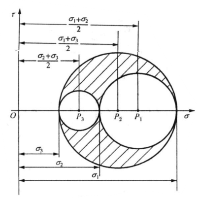 最大剪应力: $$ \tau_{\max} = \frac{\sigma_1 - \sigma_3}{2} $$