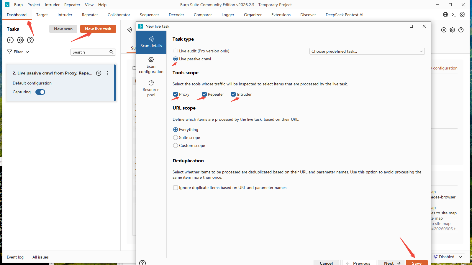 点击Dashboard\New live task,新建task