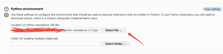 点击设置\插件\Python环境,设置jython安装路径