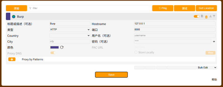 保存后点击图标选择 “Burp” 启用代理