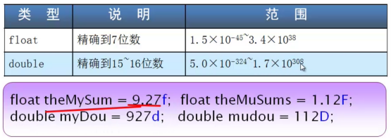 在 C# 中,带小数点的数值默认为 `double` 类型。如果需要定义 `float` 类型,必须在数值后添加后缀 f 或 F。